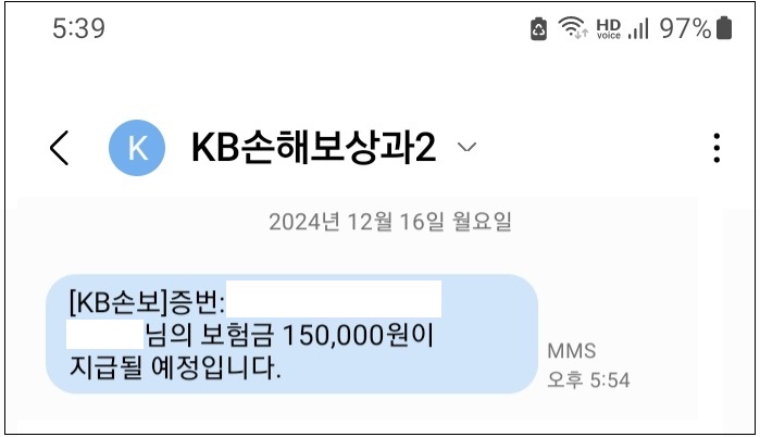 15만원 보험금 지급이 되었습니다.