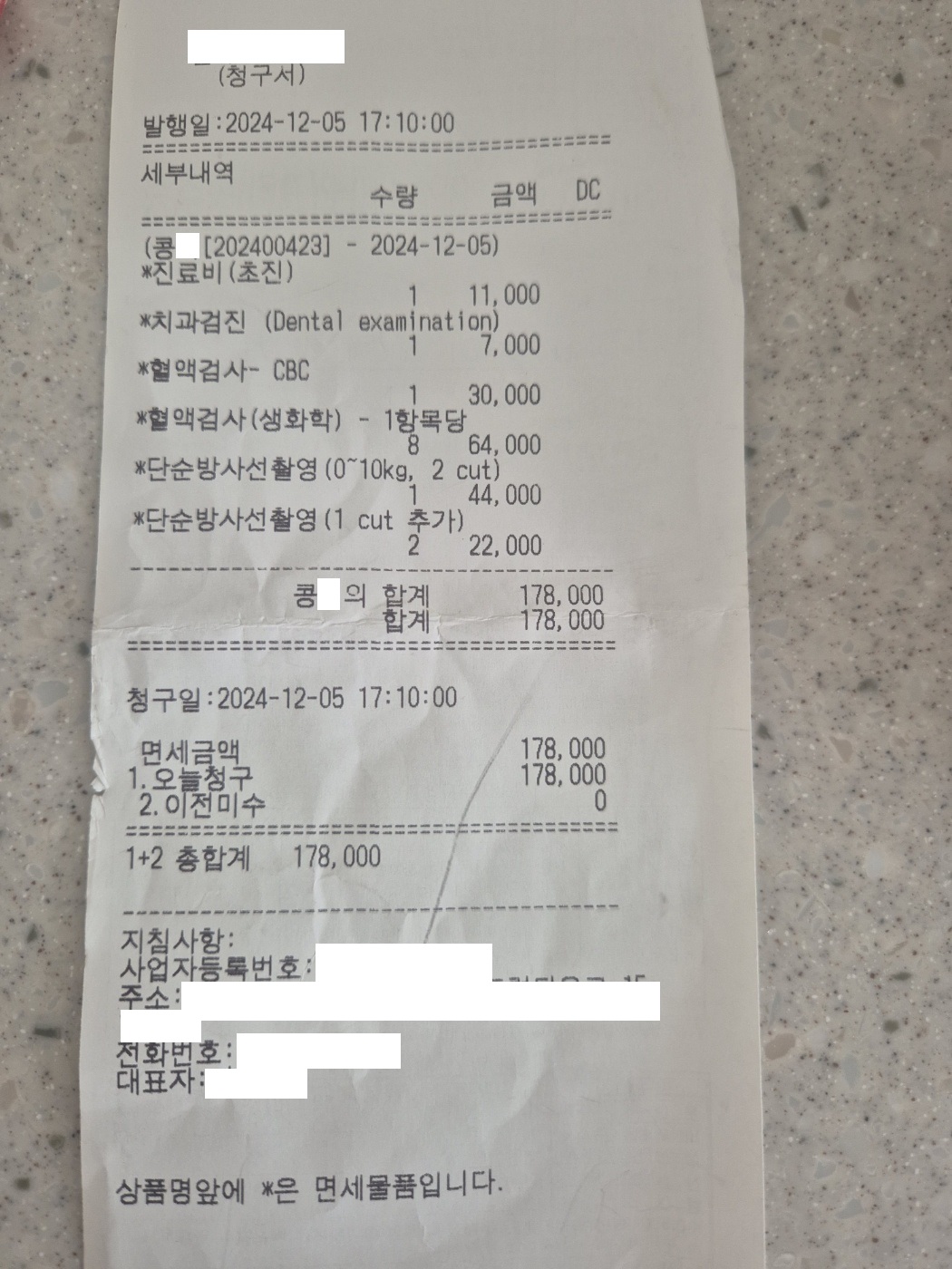 12일(목) 진료비 영수증 보내주셨는데요~
