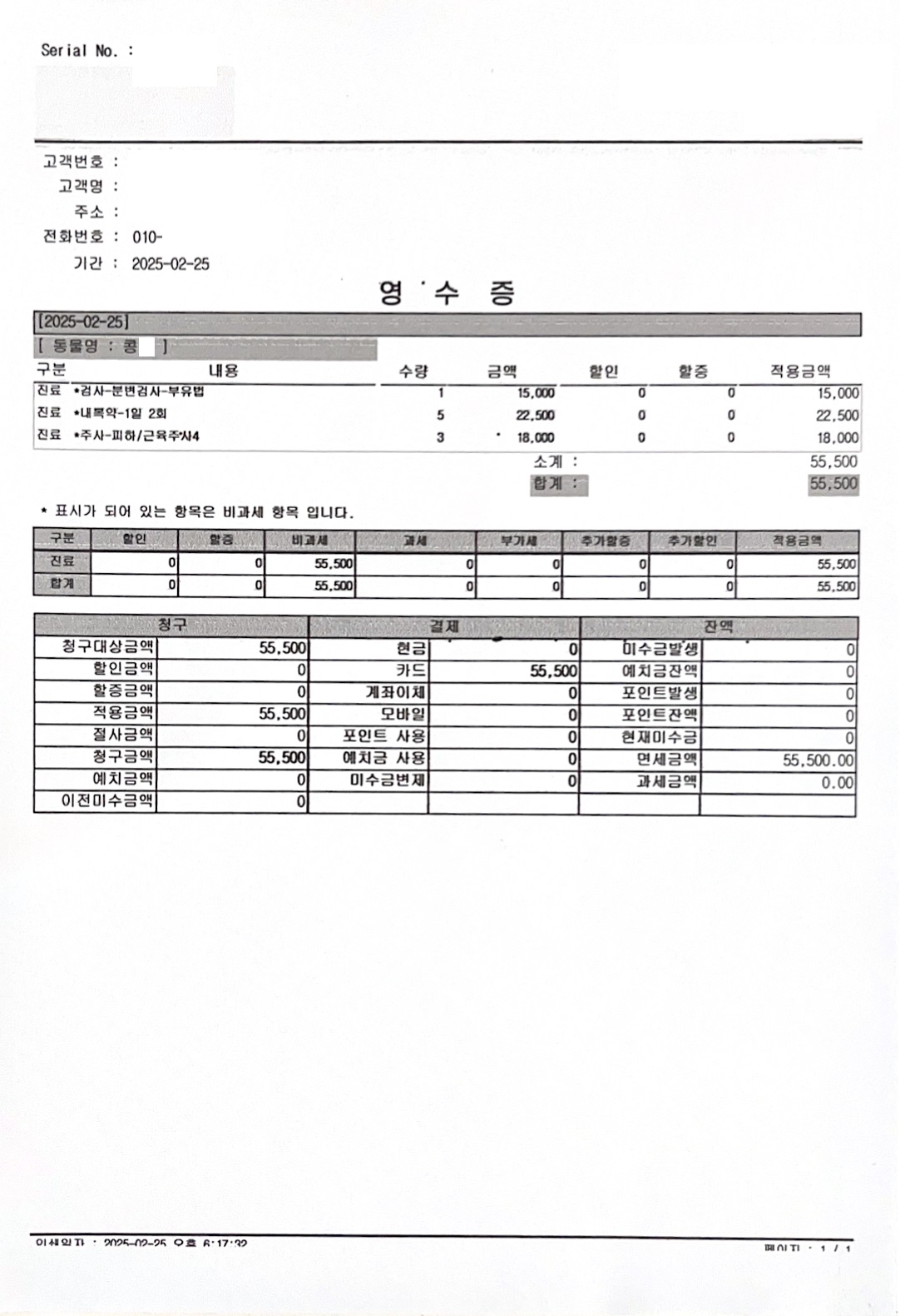 진료받으신 영수증만 카톡으로 전~~송!!!