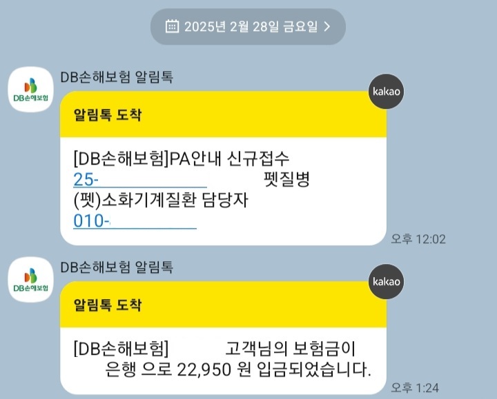 DB손해보험 펫블리 초~초초초고속으로 보험금 지급이 되었습니다^^