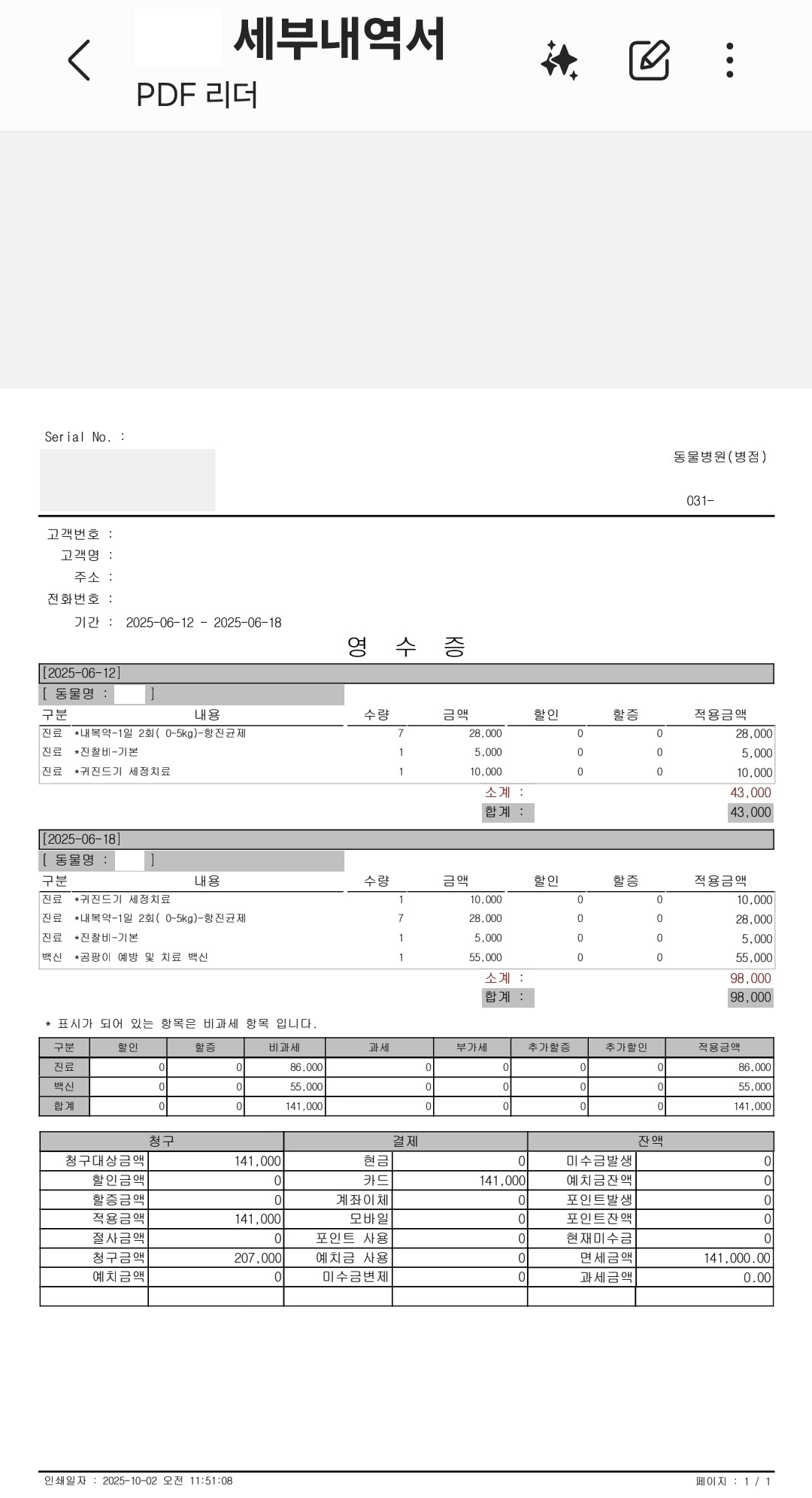 6월 18일 치료비